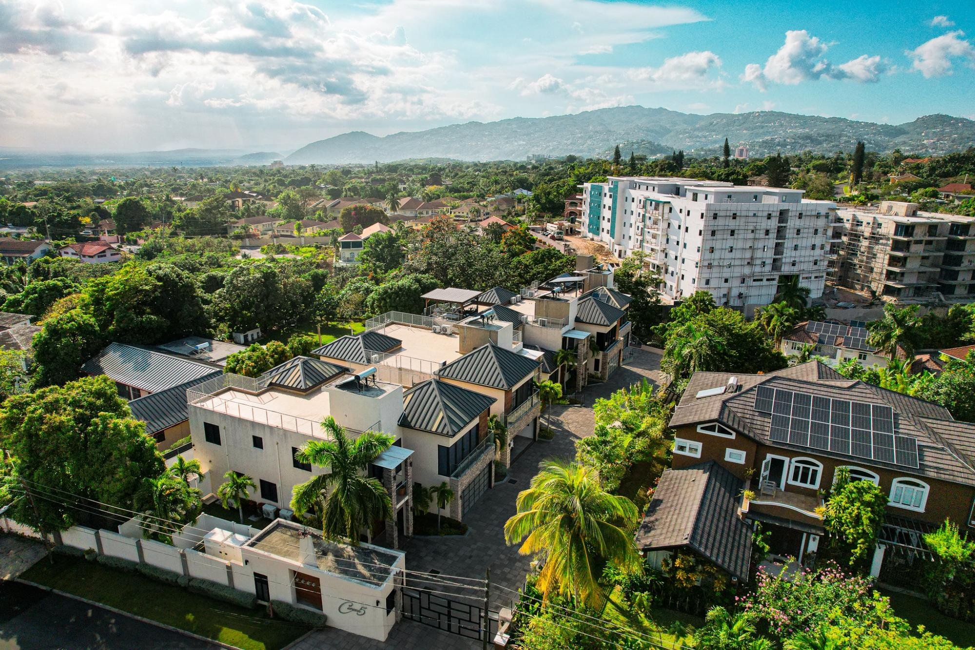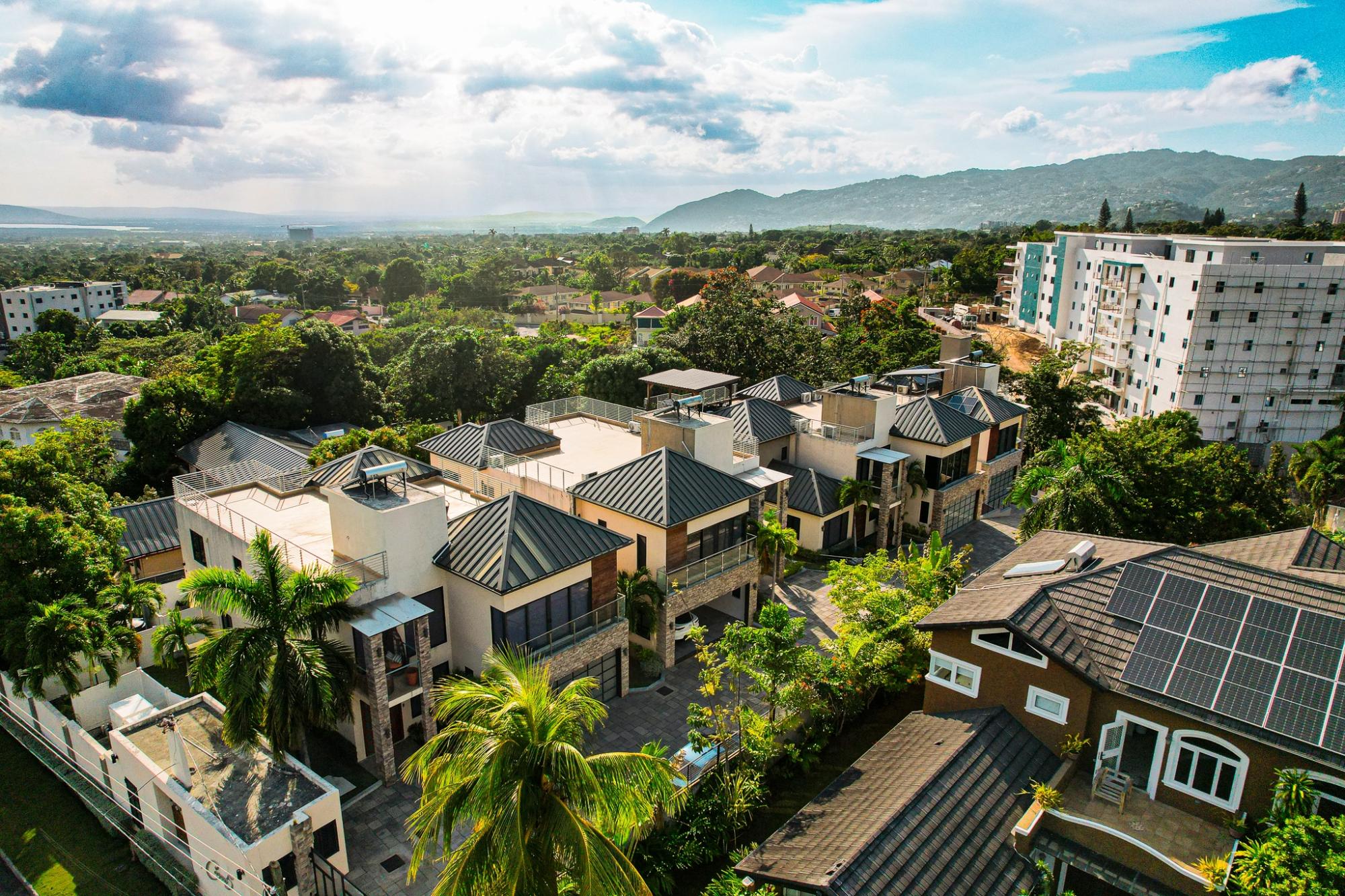 Experience elevated living at Cereza, an exclusive apartment complex in the prestigious hills of Cherry Gardens. Ideally located at 5 Cherry Drive, this expansive 5,000 sq. ft. residence offers a rare blend of space, privacy, and modern sophistication. This 4 bedroom, 6 bathroom home features soaring ceilings, clean architectural lines, and abundant natural light throughout. The living area connects to a sleek, contemporary kitchen outfitted with premium finishes, custom cabinetry, and high-end appliances. Designed for private, villa-style living, the residence includes its own swimming pool and a rooftop terrace, offering the perfect setting to relax in the cool, tranquil surroundings of Cherry Gardens. Cereza provides 24-hour security, along with a standby generator and backup water system servicing the unit for uninterrupted comfort. The home also includes a double enclosed garage for added convenience and security. Set within one of Kingston’s most desirable neighbourhoods, this residence delivers a refined lifestyle just minutes from the city’s key amenities.